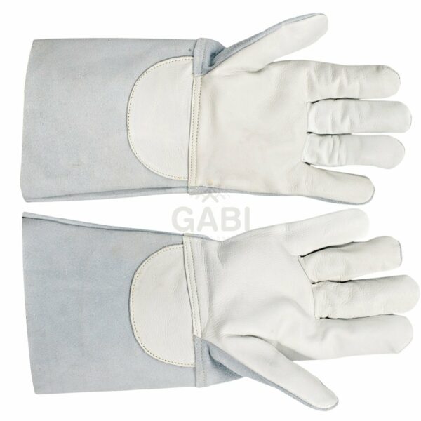 Całoskórzane rękawice spawalnicze, w części chwytnej skóra bydlęca, część wierzchnia i mankiet wykonane z dwoiny