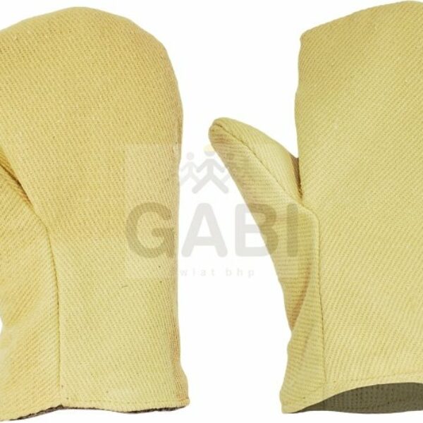 Jednopalcowe rękawice dwuwarstwowe z materiału aramid (600 g/m2), ochrona przed ciepłem kontaktowym do 350°C, krótkotrwały kontakt do 500°C