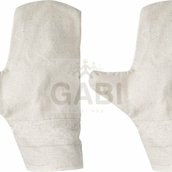 Obustronne rękawice z jednym palcem, szyte z grubego, bawełnianego materiału, z potrójną warstwą pikowaną na dłoni, całkowita długość 26 cm