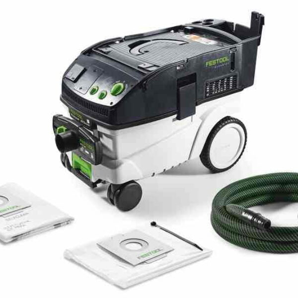 Odkurzacz mobilny CTL 26 E AC HD CLEANTEC Festool 575291.Zakres dostawy CTL 26 E AC HD filtr główny High Performance worek filtrujący SELFCLEAN worek jednorazowy wąż ssący gładki Ø 36/32 x 3,5 m-AS z obrotowymi złączkami zasuwa zamykająca ComfortClean schowek na wyposażenie w kartonie Najważniejsze zastosowania:Dopuszczony do odsysania pyłów klasy L.Odsysanie pyłów z elektronarzędzi, np. frezarek do renowacji czy bruzdownic.Do czyszczenia placu budowy, np. pomieszczeń sanitarnych.Nadaje się do odsysania na sucho i na mokro.Cechy produktu Automatyczne czyszczenie filtra głównego AUTOCLEAN (AC) regularnie przepłukuje filtr główny High Performance, co zapewnia niezmiennie wysoką moc odsysania.W przypadku bardzo dużych ilości pyłu, na przykład podczas pracy z użyciem frezarek do renowacji i szlifierek z osprzętem diamentowym, CTL 26 AC HD jest w swoim żywiole. Wyjątkowo wytrzymała konstrukcja ze stalową osią, dwoma dużymi kołami i dwoma obrotowymi kółkami zapewnia stabilność na każdej powierzchni, a jednocześnie wysoką mobilność. Wyposażony w pojemnik o objętości 26 l i przestronnej budowie. Objętość jest w pełni wykorzystana: głowica ssąca zawiera w pełni zintegrowany filtr płaski, dzięki czemu objętość brutto i netto pojemnika są prawie identyczne. Niezwykle kompaktowa turbina zapewnia odpowiednio wysoką moc odsysania. Przepływ 3900 l/min sprawia, że nie pozostaje nic poza czystym powietrzem. Dostosowany optymalnie do elektronarzędzi dzięki gniazdu elektrycznemu i funkcji automatycznego włączania z łagodnym rozruchem i opóźnieniem wyłączania, jak również dzięki płynnej regulacji siły ssania. Z nowym wężem ssącym: gładkim, elastycznym – z gładką powłoką zewnętrzną zapewniającą idealne prześlizgiwanie się po powierzchniach. Specjalny odkurzacz do szlifierek Renofix i z osprzętem diamentowym Do łączenia Systainerów konieczny jest adapter SYS-AP-CT 36 HD *Istnieje możliwość indywidualnego wyposażenia w dodatkowy moduł gniazda wtykowego, sprężonego powietrza lub Bluetooth® do zdalnego sterowania za pomocą pilota umieszczonego przy wężu ssącym lub automatycznego uruchamiania poprzez akumulator Bluetooth®.