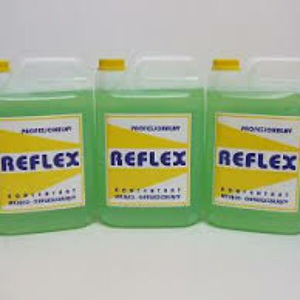Płyn do mycia 5l REFLEX Preparat o niskim PH zasadowy, który dzięki swojemu specjalnemu składowi usuwa wiele typów zanieczyszczeń. Posiada szczególne właściwości myjące, dzięki czemu usuwa skutecznie krew, atrament, smog, sadzę, nalot z dymu tytoniowego, olej i olej napędowy itp. Zastosowanie:Przeznaczony do mycia tapicerek samochodowych, mebli tapicerowanych, wszelkiego rodzaju tworzyw sztucznych i plastików, desek rozdzielczych pojazdów, metali kolorowych i stali zarówno lakierowanych jak i nielakierowanych, kostki brukowej, podłóg , maszyn jak i ich elementów, narzędzi, silników i dystrybutorów paliw, elementów ze szkła i kamienia. Doskonale sprawdza się również w gospodarstwie domowym do prania dywanów, mycia okapów nad piecem, czyszczenia mebli kuchennych i prania mocno zabrudzonych firan, zwłaszcza dymem tytoniowym. Sposób użycia:Preparat rozpuścić w wodzie w następujących proporcjach: 1 do 10 – do mycia wstępnego 1 do 5 - do mycia tapicerek, podsufitek i plastików 1 do 2 - do mycia szczególnie uciążliwych zanieczyszczeń 1 do 5 - do mycia mocno zanieczyszczonych podłóg w warsztatach 1 do 40 - do codziennego mycia podłóg i szyb Preparat nanieść na mytą powierzchnię. Najlepiej za pomocą atomizera. Pozostawić na ok. 1 minutę a następnie zetrzeć wilgotną ściereczką. Można, o ile na to pozwalają warunki spłukać wodą (mycie plandek, silników). Powierzchnie pionowe myć począwszy od partii niskich ku górze w celu uniknięcia zacieków. Tapicerki i podsufitki po nałożeniu preparatu z atomizera, po okresie ok. 2 minut zetrzeć za pomocą wilgotnej ściereczki, najlepiej mikrofibry, a następnie pozostawić do wyschnięcia. Używając odkurzacza piorącego po naniesieniu preparatu odciągać dodając wodę. Nie przemaczać. Plastiki po naniesieniu preparatu na mytą powierzchnię zetrzeć wilgotną ściereczką, a następnie wytrzeć do sucha. Tapicerki skórzane czyścić tak jak plastiki. Przed przystąpieniem do czyszczenia sprawdzić na niewidocznym kawałku skóry jaka jest reakcja preparatu z czyszczoną powierzchnią. Po zakończeniu czyszczenia zabezpieczyć powierzchnię preparatem do konserwacji skór (np. RINPEL). Pranie firan: do miski włożyć firany a następnie nalać 1 litr płynu i uzupełnić wodą. Wymoczyć w roztworze przez ok. 10 minut, od czasu do czasu mieszając. Potem wypłukać w ciepłej wodzie i wyprać w pralce. Składniki:poniżej 5% - niejonowe i anionowe związki powierzchniowoczynne, wodorotlenek sodowy EDTA-NA. Ulega biodegradacji powyżej 90%.UWAGA:R-35 - wywołuje oparzeniaR36/38 - działa drażniąco na oczy i skóręS-26 - w przypadku zanieczyszczenia oczu przemyć natychmiast dużą ilością wody, zwrócić się o pomoc lekarską. Zanieczyszczoną skórę przemyć dużą ilością wody.S-46 - po połknięciu kontaktować się natychmiast z lekarzem i pokazać opakowanie lub kartę charakterystyki produktuUWAGA!!!Drażniący Xi Produkt dostępny w opakowaniach 1, 5 i 20 litrów.