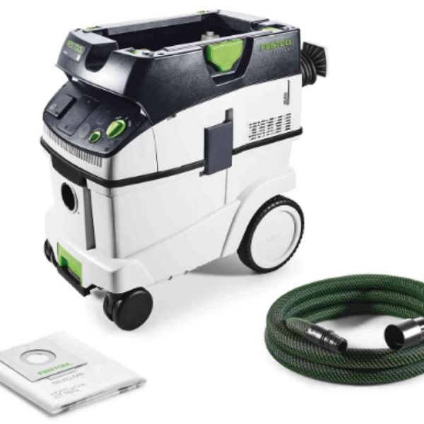 Odkurzacz mobilny CLEANTEX CTL 36 E Festool 574965Zakres dostawy: schowek na wąż SYS-Dock z funkcją T-LOC wąż ssący gładki Ø 27/32 x 3,5 m-AS/CT worek filtrujący SELFCLEAN z możliwością nawijania przewodu w kartonie Zastosowanie:Dedykowany do pyłów klasy L, o najwyższej dopuszczalnej wartości na stanowisku pracy (MAK) > 1 mg/m³.Elastyczność i czystość w warsztacie oraz na budowie dzięki kompaktowej konstrukcji i pojemności zbiornika wynoszącej 36 l.Odsysanie pyłów z elektronarzędzi dzięki automatyce włączania/wyłączania.Nadaje się do odsysania na mokro i na sucho. Cechy produktu: Specjalna geometria zbiornika CLEANTEC CTL 36 o pojemności 36 l umożliwia maksymalne wykorzystanie objętości. Dla pełnego wykorzystania objętości, filtr płaski jest w pełni zintegrowany z głowicą: objętość brutto i netto zbiornika są prawie identyczne. Pojemność zbiornika / worka filtrującego 36/34 L. Odkurzacz jest bardzo mobilny, dzięki przednim kółkom skrętnym oraz kołom tylnym. Hamulec zapewnia stabilność na każdej powierzchni, a także podczas transportu. Niezwykle kompaktowa turbina o wysokiej wydajności zapewnia odpowiednią siłę ssania. Przepływ 3900 l/min oznacza, że nie pozostaje nic poza czystym powietrzem. Gładki wąż ssący i zoptymalizowany SYS-Dock z uchwytem do nawijania przewodu i funkcją T-LOC dla wygodnego łączenia Systainera z odkurzaczem mobilnym. Funkcja antystatyczna zapobiegająca wyładowaniom elektrostatycznym. Jeszcze silniejsze oczyszczanie z użyciem zasuwy zamykającej ComfortClean (dodatkowe wyposażenie) Mocowanie Systainerów na „bagażniku”. Schowek na wąż i przewód dla większego porządku i bezpieczeństwa. *Istnieje możliwość indywidualnego wyposażenia w dodatkowy moduł gniazda wtykowego lub Bluetooth® do zdalnego sterowania za pomocą pilota umieszczonego przy wężu ssącym lub automatycznego uruchamiania poprzez akumulator Bluetooth®