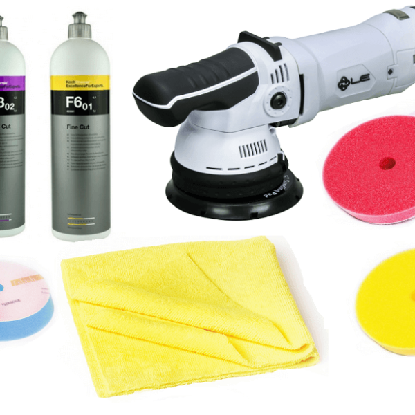 Zestaw polerski - idealny dla użytku zarówno profesjonalnego jak i dla pasjonatów. Skomponowany w oparciu o produkty sprawdzone przez wielu naszych klientów. Zestaw dostarczany jest z markową torbą Liguid Elements. *Zdjęcie poglądowe - pełen skład zestawu poniżej. Skład zestawu:1 x Maszyna Polerska DA T4000 Liquid Elements M11 + z talerz oporowy 125 mm + zapasowe szczotki węglowe1 x Pasta polerska mocno ścierna olejowa Heavy Cut 8.02 1L Koch 312001 1 x Pasta polerska wykończeniowa Micro Cut M3.02 1L Koch 403001 1 x Delikatna politura Chemie Fine Cut F6.01 1L Koch 405001 3 x Ściereczka z mikrofibry cięta laserowo 40 x 40 cm Daniel Washington 1 x Gąbka polerska SLASH 148 x 133 x 25 mm niebieska, twarda Nat PVLB11141481 x Gąbka polerska SLASH 148 x 133 x 25 mm czerwona, średnio miękka Nat PVLR1214148 1 x Gąbka polerska SLASH 148 x 133 x 25 mm żółta, średnio twarda Nat PVLY1014148 1 x Torba Liquid Elements Polerka DA T4000 V2 Liquid Elements to uniwersalna maszyna przeznaczona do użytku zarówno dla profesjonalistów jak i amatorów. Polerka została wyosażona w 2 diody LED, dzięki którym operator maszyny może kontrolować nacisk. Kiedy świeci się zielona dioda – nacisk na powierzchnię jest prawidłowy natomiast zapalenie się czerwonej diody informuje o zbyt dużym nacisku urządzenia na polerowaną powierzchnię. Bardzo niskie wibracje podczas pracy gwarantują komfort pracy. Długi na 8 m przewód ułatwi dotarcie do każdego elementu obrabianej powierzchni. Ergonomiczny uchwyt na przedzie maszyny pokryty dodatkową warstwą gumy zwiększa chwytność. Polerka bardzo lekko się prowadzi, a dodatkowe szczotki węglowe gwarantują niezawodność w pracy. Pasty polerskie renomowanej firmy KochChemie - dobrane tak, aby bezpiecznie i efektywnie wypolerować każdą powierzchnię. Pasta polerska mocno ścierna olejowa Heavy Cut Koch H8.02. To politura maszynowa stworzona w celu szybkiego polerowania silnie zniszczonych lakierów, usuwania głębszych rys, skutecznego pozbywania się nalotu po lakierowaniu i śladów ściernych po papierze ściernym o gradacji nawet 1500. Osiąga bardzo wysoki poziom korekty z jednoczesnym doskonałym połyskiem. Pasta nadaje się do wszystkich rodzajów lakierów. Pasta polerska wykończeniowa Micro Cut M3.02 Koch. Pasta delikatnie usuwa hologramy i delikatne zadrapania, a nie tylko je maskuje. Pasta polerska do trwałego usuwania zadymień polerskich, hologramów, delikatnych zadrapań i zmatowień po papierze o gradacji aż do P3000. Przeznaczona do wszystkich rodzajów lakierów (w tym odpornych na zarysowania). Zastosowanie jednorodnych cząsteczek ściernych pozwala na uzyskanie doskonałego wykończenia o wysokim połysku, nawet na ciemnych kolorach. Delikatna politura ścierna Fine Cut F6.01 Koch Nie zawiea oleju silikonowego. Przeznaczona do polerowania maszynowego. Zawiera materiał ścierny na bazie tlenku glinu. Produkt zapewnia bardzo szybkie, całkowite usuwanięcie zarysowańi zapewnia długotrwały połysk. Pasta bezproblemowo usuwa ślady po szlifowaniu papierem ściernym P2500. Nadaje się tym samym do perfekcyjnej obróbki średnio lub silnie zwietrzałych lakierów samochodowych. Akcesoria polerskie w skład których wchodzą trzy gąbki polerskie 150 mm o różnej twardości, oraz trzy ściereczki z miękkiej mikrofibry doskonale uzupełniają zestaw. Sposób użycia:Pasta polerska mocno ścierna olejowa Heavy Cut Koch H8.02: Polerować za pomocą polerki rotacyjnej w połączeniu z futrem polerskim z wełny owczej (przy usuwaniu zmatowień po papierze o ziarnistości 1500-2500) lub gąbki polerskiej (przy usuwaniu zmatowień po papierze o ziarnistości 2500-5000). Należy zastosować średnią prędkość obrotową i średni nacisk. Na zakończenie wypolerować pastą antyhologramową w celu uzyskania wysokiego połysku. Pasta polerska wykończeniowa Micro Cut M3.02 Koch: Gąbkę/pad przed użyciem nasączyć politurą. Rozprowadzić politurę równomiernie na obrabianej powierzchni przy wyłączonej maszynie polerskiej. Polerować wywierając umiarkowany nacisk ruchami na krzyż aż do utworzenia się transparentnego filmu. Gąbek używanych do tego produktu nie stosować zamiennie z innymi produktami. Delikatna politura ścierna Fine Cut F6.01 Koch: Pastę polerską Fine Cut F6.01 nanieść na gąbkę polerską. Polerować wyczyszczoną wstępnie powierzchnię z maksymalną prędkością 2000 obr/min. Efekt polerowania można zmieniać przez zmianę nacisku, padu polerskiego i prędkość obrotową. Na początku procesu szlifowania zalecamy obróbkę z większym naciskiem na niższych obrotach. Potem stopniowo zmniejszać nacisk i wypolerować na wysoki połysk z większą prędkością obrotową. Ewentualnie powstałe naloty lub ślady po polerowaniu usunąć za pomocą pasty polerskiej antyhologram o wysokim połysku (Koch Micro Cut M3.02). Uwaga! Przed użyciem wstrząsnąć. Chronić przed mrozem i nadmierną temperaturą. Nie stosować na gorących powierzchniach. Przed użyciem wypróbować działanie produktu i sprawdzić jego przydatność. Poniżej w tabeli przedstawiono parametry techniczne polerki DA T4000 Liquid Elements