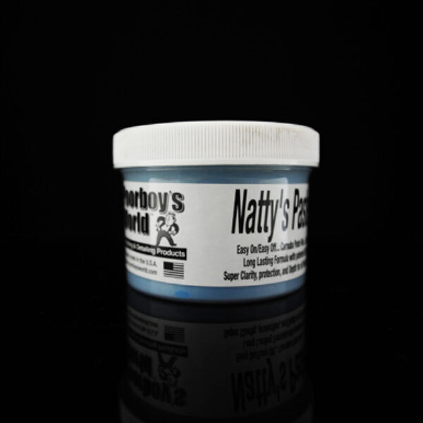 POORBOY’S WORLD Natty’s Paste Wax - Blue Poorboy’s Natty’s Blue Paste Wax jest jednym z najbardziej wartościowych wosków naturalnych dostępnych na rynku w tak przystępnej cenie. Pozostawia ekstremalnie „mokre” i lśniące wykończenie na lakierze samochodowym. Wzmacnia głębię koloru ciemnych lakierów, dając tym samym niepowtarzalny efekt. Zawartość naturalnych wosków carnauba jest uzupełniona dodatkowo przez opatentowaną recepturę filtrów absorbujących promienie UV, co wynosi ochronne właściwości wosku na całkiem nowy poziom. Produkt jest łatwy w aplikacji oraz polerowaniu, posiada fantastyczny zapach. Pojemność: 227ml