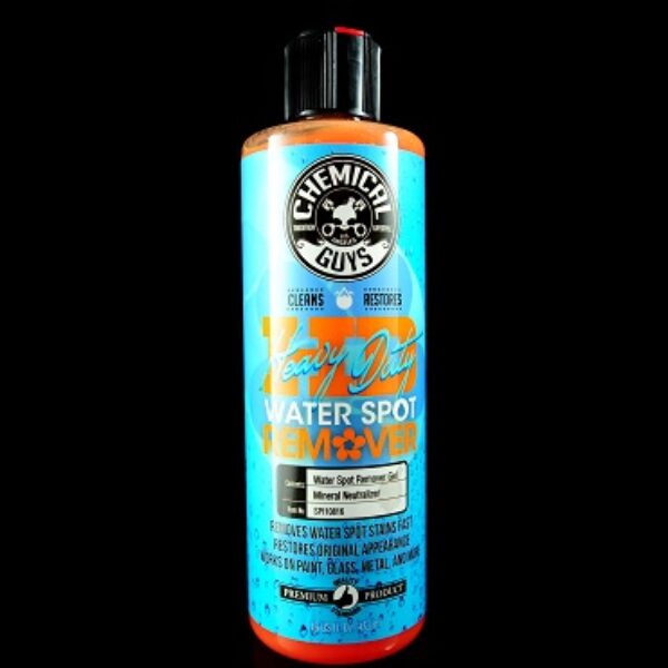 Chemical Guys Water Spot Remover 473mlPierwszy naprawdę efektywny produkt do usuwania plam po twardej wodzie. Specjalistyczny żel neutralizuje plamy dzięki zawartości łagodnego kwasu. Bezpieczny dla lakieru, metalu, szkła i aluminiumSposób użycia: Pracuj w cieniu Dokładnie oczyść powierzchnię Pracuj na małych elementach (50x50cm) Wypracuj produkt aplikatorem z mikrofibry Spłucz dużą ilością wody demineralizowanej.Zabezpiecz woskiem i/lub sealantemPojemność: 473 ml