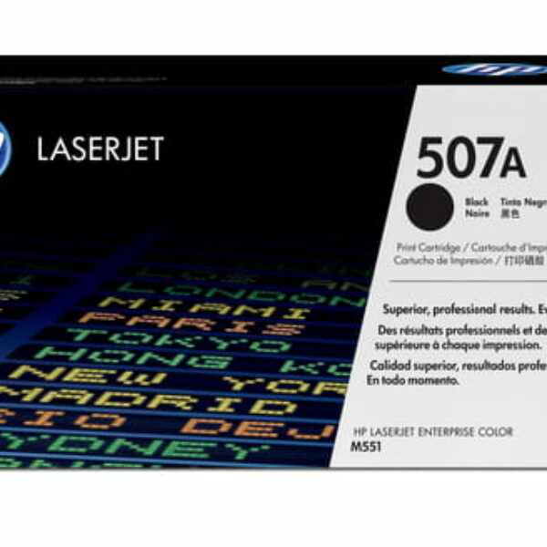 Idealne rozwiązanie do drukowania kolorowych dokumentów biznesowych i materiałów marketingowych z grafiką fotograficznej jakości.\nWkład z czarnym tonerem HP 507A zapewnia wysoką wydajność w biznesie. Dzięki oryginalnym wkładom z tonerem HP przeznaczonym do drukowania wiadomości, szkiców i dokumentów z wyraźnym czarnym tekstem unikniesz marnowania czasu i materiałów eksploatacyjnych.Parametry techniczneKompatybilnośćHP LaserJet Enterprise M551, M575 / HP LaserJet Pro M570