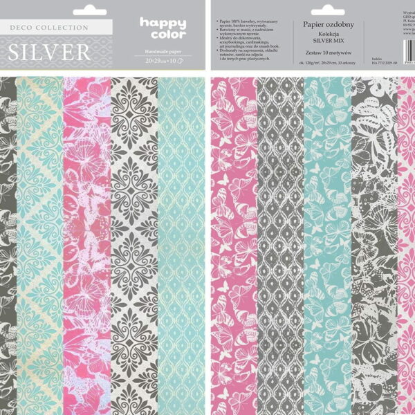 Papiery ozdobne Deco SILVER MIX 10 motywów 20X29cm 10 arkuszy Happy Color