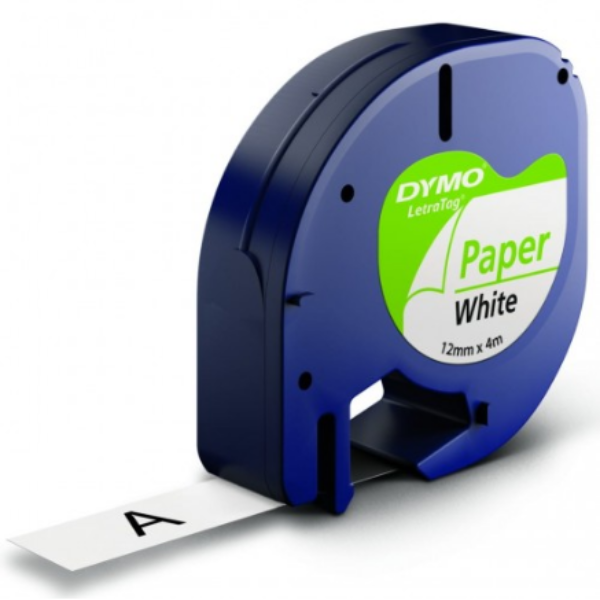Taśma DYMO LetraTag papierowa 12mm / 4m biała Dane techniczne: Nazwa: Taśma DYMO LetraTag papierowa 12mm / 4m biała Kod producenta: 59421 S0721500 Rozmiar: 12 mm x 4 m Kolor nadruku: Czarny Kolor taśmy: Biały Odporność na promieniowanie UV: Nie Wodoodporność: Nie Odporność na temperaturę: -12 ÷ 25°C Metoda nadruku: Bezpośredni nadruk termiczny Kompatybilność z modelami: LetraTag 100T oraz LetraTag 100H Przeznaczenie: Płaskie, gładkich, równych powierzchnie (plastik, papier, szkło, metal, drewno)