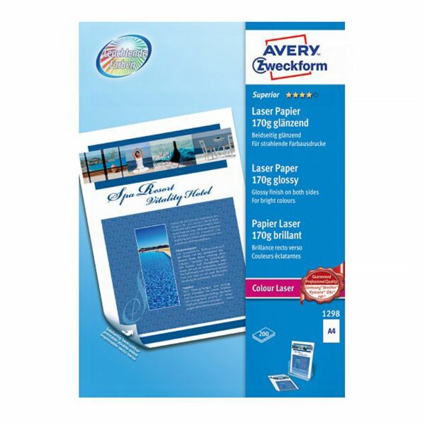 Papier do kolorowych drukarek laserowych błyszczący obustronnie powlekany 170g Avery Zweckform 210x297 mm 1298 biały