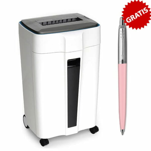 Do niszczarki dodajemy Długopis marki Parker z limitowanej edycji Jotter Since'54 w kolorze różowym Niszczarka Wallner HD-300 C4 szerokość wejścia: 240 mm automatyczny start/stop z autoreversem osobna szczelina do niszczenia płyt CD i kart plastikowych dioda LED informująca o otwartych drzwiczkach lub przepełnieniu kosza zabezpieczenie silnika przed przegrzaniem cichy silnik przystosowany do pracy ciągłej do 20 minut optyczny wskaźnik napełnienia kosza obudowa na kółkach pojemność kosza 38 l Parametry techniczne wielkość ścinka: 4 x 25 mm ilość niszczonych kartek (A4/ 80 g): 19 poziom bezpieczeństwa DIN 32757: 3 poziom bezpieczeństwa DIN 66399: P-4/ O-1/ T-4/ E-3/ F-1 niszczy: karty plastikowe, płyty CD, zszywki, spinacze wymiary: 667 x 350 x 404 mm