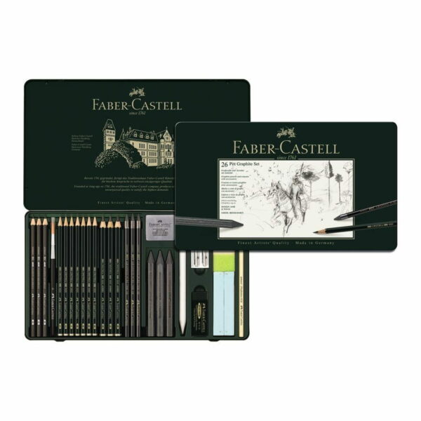 - specjalny zestaw wysokiej jakości ołówków i grafitów, łączący profesjonalne standardy - wysokiej jakości ołówki z czystego grafitu w ochronnej osłonie - grafity idealne do ekspresyjnego cieniowania - wielkość zestawu: duży - metalowe opakowanie