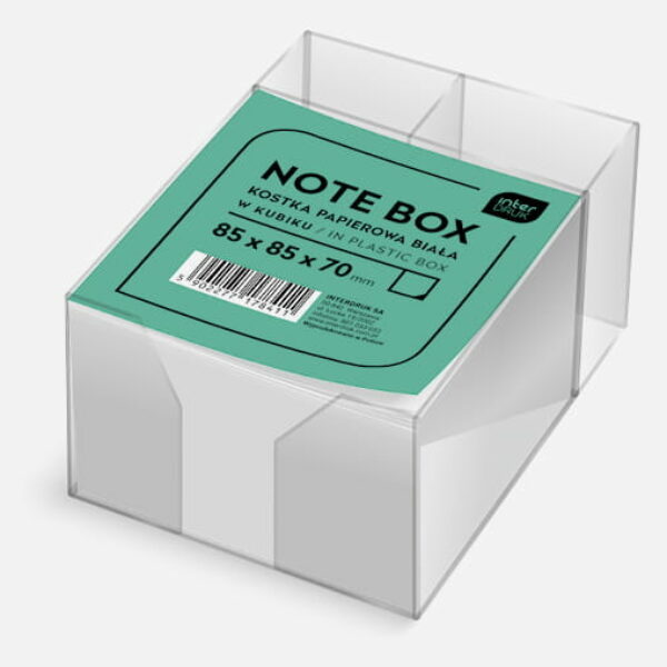 Kostka papierowa biała 85x85x70 mm w kubiku Interdruk KOSPAPBKUBD