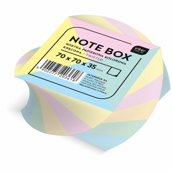 Kostka papierowa kolorowa kręcona rozmiarach 70x70x35mm firmy Interdruk.
