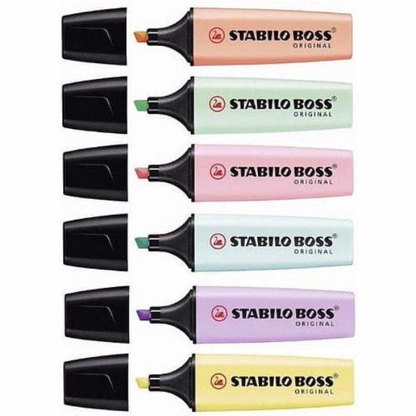 Numer 1 na świecie! Niedościgniony klasyk od 1971 roku. W każdej sekundzie sprzedają się 2 zakreślacze BOSS w Europie. Zakreślacz fluorescencyjny z tuszem na bazie wody do pisania na wszystkich rodzajach papieru (również faksowym i samokopiującym). Pozostawiony bez skuwki nie zasycha nawet przez 4 godziny, a po zamknięciu ma właściwości regeneracyjne. Jedyny zakreślacz dostępny aż w 15 kolorach. Szerokość linii od 2 do 5 mm. Kolor pastelowy turkusowy