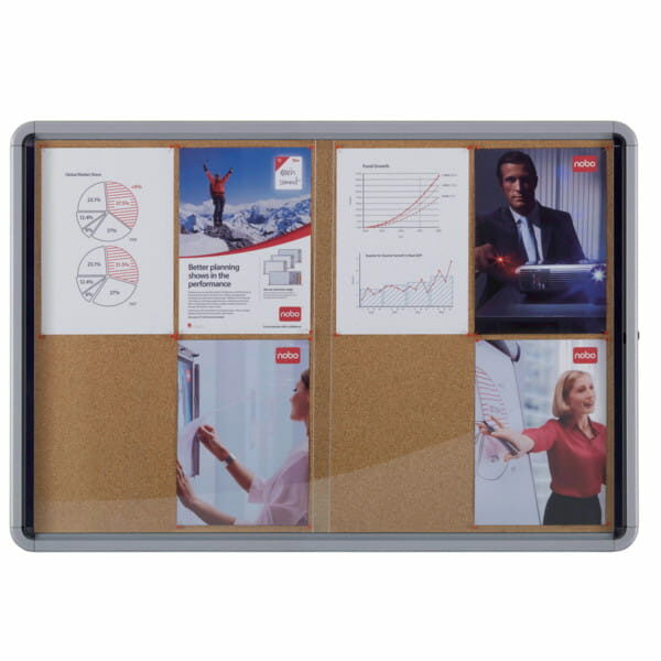 Korkowa gablota ogłoszeniowa ze szklanymi przesuwanymi drzwiami i dyskretnym narożnym zamkiem na klucz, obramowana nowoczesną, stylową aluminiową ramą, zapewni Ci idealną powierzchnię do przypinania i bezpiecznego eksponowania przygotowanych informacji. Mocowana do ściany za pomocą szyny i w narożnikach. Rozmiar: 12 kartek A4.Gablota ogłoszeniowa z rozsuwanymi drzwiami wykonanymi z bezpiecznego szkła, zamykanymi na klucz dyskretnym narożnym zamkiemSamozasklepiająca się korkowa powierzchnia umożliwia przypinanie i bezpieczne eksponowanie przygotowanych informacjiRozmiar: 12 kartek A4, 925 x 970 mmObramowana nowoczesną, stylową aluminiową ramąMocowana do ściany za pomocą szyny i w narożnikach10-letnia gwarancja