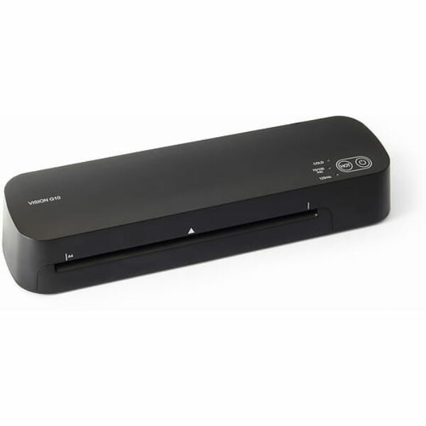 Laminator Vision G10 nowoczesny laminator biurowy laminacja na gorąco lub zimno funkcja cofania umożliwiająca wycofanie źle włożonej folii technologia 2 gorących wałków - eliminuje stosowanie carriera dioda sygnalizująca osiągnięcie temperatury roboczej grubość folii laminacyjnej 75-125 mic maksymalna grubość laminowanego dokumentu 0,5 mm szerokość laminacji 235 mm (A4) czas nagrzewania 3-4 minuty wymiary 360 x 112 x 65 mm prędkość laminacji 410 mm/m2n gwarancja: 2 lata Maksymalny format dokumentów A4+ (216 x 303 mm) Maksymalna szerokość dokumentów 235 mm Ilość gorących wałków 2 Maksymalna grubość folii laminacyjnej 125 mic Prędkość laminacji 410 mm/m2n Czas nagrzewania 3-4 minut Laminacja na zimno nie Laminacja bez carriera tak Możliwość lamiancji zdjęć tak Możliwość wyzłacania napisów nie Praca w pełni automatyczna nie Wymiary 360x112x65 mm