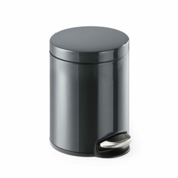 Metalowy kosz z pedałem pokryty warstwą ochronną z tworzywa. Wyjmowany wewnętrzny pojemnik z rączką. Bezszelestne zamykanie. Torba na śmieci może być przymocowana do obręczy z gumy. Bezszelestne zamykanie. Antypoślizgowy spód. Rączka zintegrowana z zawiasem. Wymiary: 260 x 290 mm (Gł X Wys)wewnętrzny pojemnik 5 l. Kolor: antracytowy