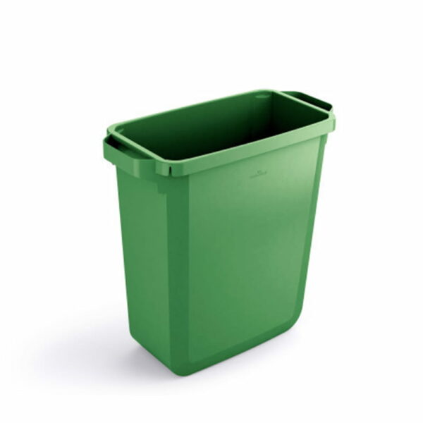 Prostokątny pojemnik o pojemności 60 litrów. Idealny do odpadów i recyklingu. Z mocnymi rączkami ułatwiającymi jego przenoszenie oraz uchwytem na dnie do wygodnego opróżnianie kosza. Szczeliny do zaczepienia worków na śmieci. Przechowywanie żywności możliwe we wszystkich kolorach (zgodnie z rozporządzeniem UE 1935/2004/WE), z wyjątkiem koloru czarnego, ponieważ zawiera granulat z recyklingu.Wymiary: 590 x 600 x 282 mm (szer. x wys. x głęb.)