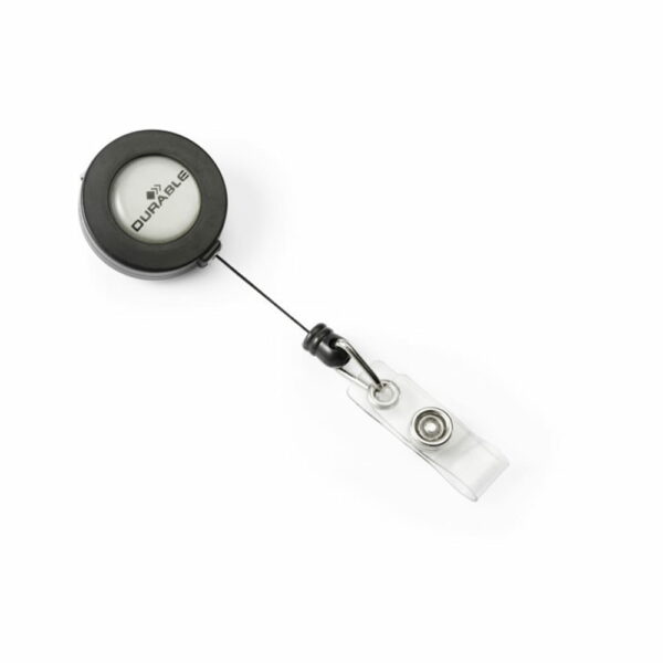 Mechanizm ściągający z metalowym klipem na tylnej ściance do zaczepienia na pasku lub ubraniu. Bezpieczny sposób prezentacji identyfikatora lub karty. Opakowanie detaliczneDługość linki: ca. 80 cm