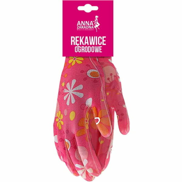 Rękawice ogrodowe Anna Zaradna. Delikatny, oddychający materiał zapobiega poceniu się dłoni, a specjalna, gumowa powłoka chroni je przed zabrudzeniem i zadrapaniem. długość: 22,5 cm szerokość: 14 cm (dłoń i palce) 7 cm mankiet ilość: 1 para surowiec: poliester+pianka nitrylowa rozmiar: uniwersalny wytrzymałe