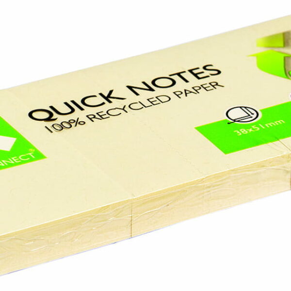 Bloczek samoprzylepny Q-CONNECT 100% Recycled, 38x51mm, 3x100 kart., żółty