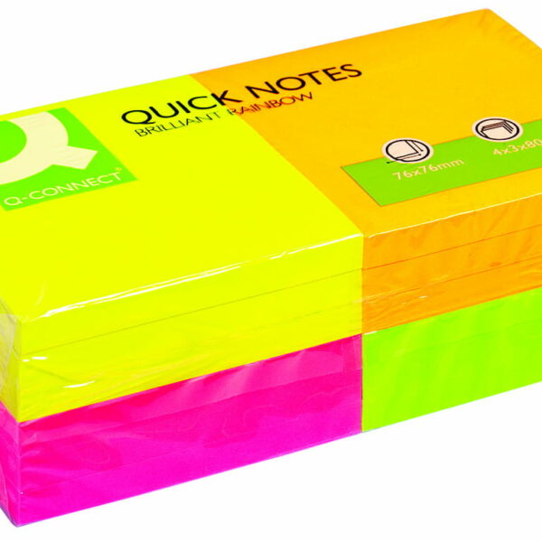 Bloczek samoprzylepny Q-CONNECT Rainbow, 76x76mm, 4x3x80 kart., neon, mix kolorów