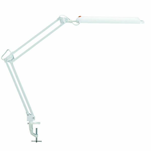 profesjonalna lampa do pracy wysoka jakość oświetlenia atrakcyjna cena certyfikat bezpieczeństwa Intertek GS podłużna głowica i delikatna konstrukcja podwójnego ramienia opatentowana koncepcja bezpieczeństwa technicznego opracowana przez inżynierów MAUL źródło światła: energooszczędna żarówka 11W typ trzonka: G23 biel światła dziennego (6500K) sprzedawana z żarówką w klasie energetycznej A średnie zużycie energii: 14 kWh/1000h żywotność źródła światła: 8000 godzin świecenia nie pobiera mocy w stanie OFF natężenie oświetlenia: 1700lx w odległości 35cm strumień świetlny: 840lm górne ramię o długości 34cm, dolne ramię - 33cm głowica oświetleniowa o wymiarach 36x7cm łatwo dostępny przełącznik umieszczony na głowicy reflektorek dla optymalnego wykorzystania oświetlenia oprawa pasuje do żarówek klasy energetycznej od A+ do B wersja z metalowym zaciskiem do mocowania do biurka o grubości blatu do 5,5cm, z ochronną podkładką wysokość robocza w typowej pozycji wynosi 42cm 2 lata gwarancji kolor: biały