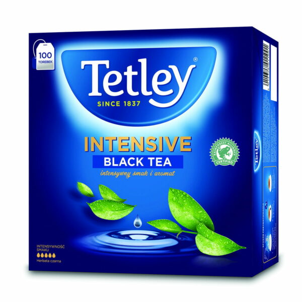 Tetley Intensive to wysokiej jakości kompozycja czarnych herbat z Kenii oraz Indyjskich herbat Assam, które tworzą wyjątkowe połączenie, dając szlachetny napar o intensywnym smaku i aromacieherbata pakowana w Indiachw opakowaniu 100 torebek
