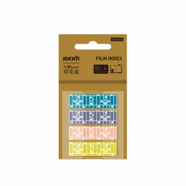 Zakładki indeksujące z kolekcji Blooom. Kolekcja Blooom to seria produktów stworzona we współpracy ze studiem młodych projektantów "Studio inBlooom" z Tajwanu. Jest to seria produktów o bardzo ciekawych wzorach i kolorach charakterystycznych dla tej części Azji. Pastelowe kolory oraz kwiatowe i zwierzęce motywy urzekają swoją prostotą. Foliowe zakładki indeksujące, z systemem Z ułatwiającym odrywanie zakładek z blisterka, 80 zakładek w 4 tonacjach kolorystycznych.