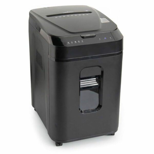 NISZCZARKA WALLNER AF 160 C4 szerokość wejścia: 220 mm wielkość ścinka: 4×12 mm ilość niszczonych kartek (A4/ 80g): 10 poziom bezpieczeństwa DIN 66399: P-4/ T-4 niszczy: papier, karty plastikowe zszywki, małe spinacze pojemność kosza: 32 l wymiary: 580x466x356 mm automatyczny podajnik papieru na 160 kartek funkcjonalny panel dotykowy uruchamiający wskazaną funkcję urządzenia przycisk otwierający pokrywę podajnika wysuwany pojemnik na ścinki zerowy pobór prądu w trybie czuwania – automatyczne przejście w tryb stand-by okno w obudowie umożliwiające kontrolę napełnienia kosza cichy silnik przystosowany do pracy ciągłej do 30 minut lub do 60 minut przy auto podajniku automatyczny start/stop i funkcja cofania (autoreverse) zabezpieczenie silnika przed przegrzaniem obudowa na kółkach gwarancja: 2 lata Parametry techniczne: Rodzaj cięcia ścinki Ilość niszczonych kartek 10 (80g) Niszczone nośniki danych karty plastikowe, zszywki, spinacze Szerokość wejścia (mm) 220 Szerokość cięcia (mm) 4×12 Poziom bezpieczeństwa DIN 66399 P-4/T-4 Automatyczny Start/Stop tak Sygnał świetlny: otwarte drzwi/wyjęty kosz tak Optyczny wskaźnik napełnienia worka tak Zabezpieczenie przed przegrzaniem tak Poziom hałasu (dB) 55 Moc (W) 260 Objętość pojemnika (litry) 32 Wymiary [szer. x gł. x wys.] (mm) 356x466x580 Automatyczny podajnik papieru tak