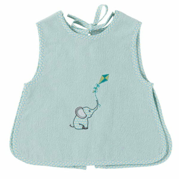 Śliniak haftowany, frotte, 100% bawełna o gramaturze 360 g/m2. Występują w kolorze niebieskim z wyhaftowanym motywem serii. Śliniak w formie ubranka wiązany z tyłu. Zewnętrzna strona welurowa, wewnętrzna frotte.