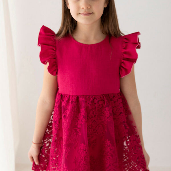 Koronkowa sukienka dla dziewczynki malinowa QUEEN 128 Wiosna/Lato Wizytowe