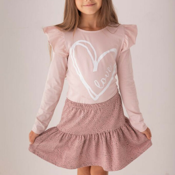 Pudrowa spódnica w panterkę dla dziewczynki 116