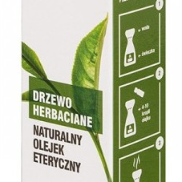 Olejek z drzewa herbacianego uważny jest za silny antyseptyk. Pomaga zwalczać przeziębienia i grypę, łagodzi choroby gardła, zapalenie migdałków, łagodzi objawy zapalenia oskrzeli. Zapobiega wielu chorobom zakaźnym i tropikalnym. Wykazuje działanie: Antybiotyczne, stymulujące, antyseptyczne, przeciwbólowe, przeciwzakaźne, grzybobójcze, bakteriobójcze, antywirusowe, łagodzi objawy przeziębienia, kaszlu i kataru SPOSÓB UŻYCIA masaż - stymuluje układ odpornościowy, kąpiel - stymuluje układ odpornościowy, pomaga w zwalczaniu grzybicy stóp i dłoni, stosowanie punktowe - na kurzajki, trądzik, pęcherze, poparzenia, opryszczki, inhalacja moczenie stóp - skuteczne w walce z grzybicą międzypalcową i innymi zakażeniami tego pochodzenia, płukanki - bóle gardła, zapalenia jamy ustnej, zapalenie dziąseł, aromatyzacja powietrza - kominek zapachowy, dyfuzor, rozpylacz w spray. Silnie właściwości oczyszczające powietrze z bakterii, dodatek do prania - kilka kropli olejku rozpuścić w płynie do prania lub dodać do proszku przed praniem.