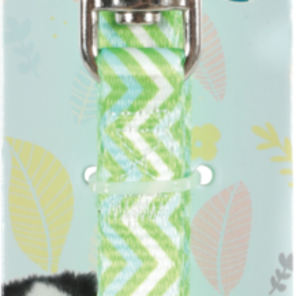Smycz dla szczeniąt PIXIE kol. zielonyNylonowa smycz dla szczeniaka ozdobiona uroczymi motywami małych piesków idealnie będzie pasować do każdego energicznego malucha.Wyposażona jest w metalowy karabińczyk, więc z łatwością można przypiąć do obroży lub szelek psa z tej samej gamy.Produkt przeznaczony wyłącznie dla zwierząt.Wymiary (długość x głębokość x wysokość): 25 x 10 x 1200 m