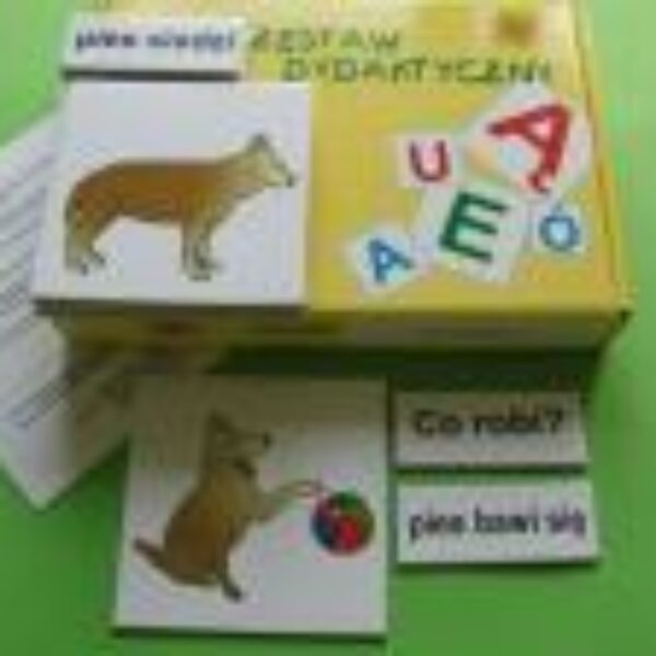 Co robi pies? to zestaw edukacyjny złożony z plakietek i etykietek przenoszących obiekty znane z rzeczywistości na ich wersje obrazkowe. Celem zestawu jest:uświadamianie faktu, że słowo (napis) ma odzwierciedlenie w rzeczywistościpomoc w nauce czytanianauka rozumienia pytańnauka udzielania odpowiedzi na pytaniaokreślanie czynności wykonywanych przez zwierzętapomoc w przyswojeniu zdań dwuwyrazowychnauka zwracania uwagi na drugi wyraz w zdaniu (podczas czytania globalnego)nauka rozumienia pytań o konstrukcji: Co robi....?W skład zestawu edukacyjnego Co robi pies? wchodzą następujące elementy:7 elementów obrazkowych8 etykietek opisowychopis przykładowych ćwiczeńProdukt wykonany jest z tektury i zapakowany w woreczek umieszczony w tekturowym pudełku.