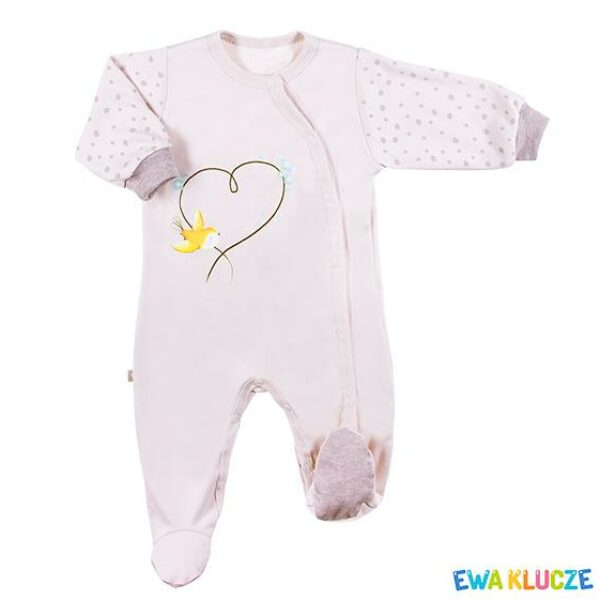Pajac bawełniany z serduszkiem, EWA KLUCZE, Bird, beżowe-86