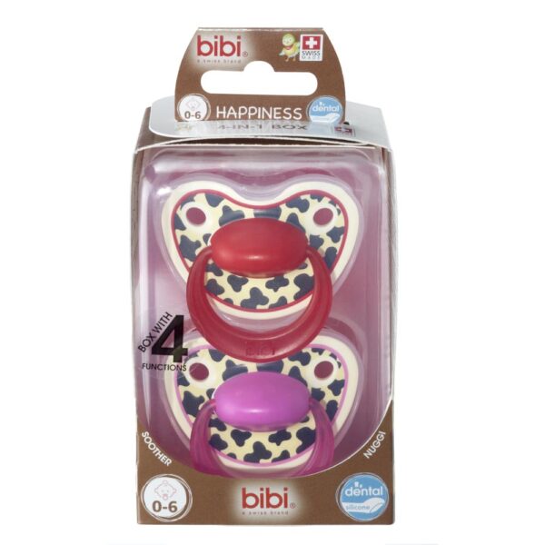 Bibi Swiss jest producentem najwyższej jakości akcesoriów niemowlęcych. Smoczki tej marki z kolekcji HAPPINES są połączeniem wysokiej funkcjonalności z wielką różnorodnością wzorów. Wszystkie Smoczki Bibi Swiss nie zawierają Bisfenolu. Idealnie wpływają na rozwój zgryzu oraz podniebienia, dzięki ortodontycznemu kształtowi. Dodatkowo posiadają tarczkę z otworami wentylacyjnymi zapewniającymi komfort nawet w trakcie bardzo długiego użytkowania. Każdy smoczek posiada osłonkę, która ma za zadanie chronić go przed zabrudzeniami. Smoczki występują w trzech rozmiarach: 0-6 miesięcy, 6-12 miesięcy oraz 12-36 miesięcy