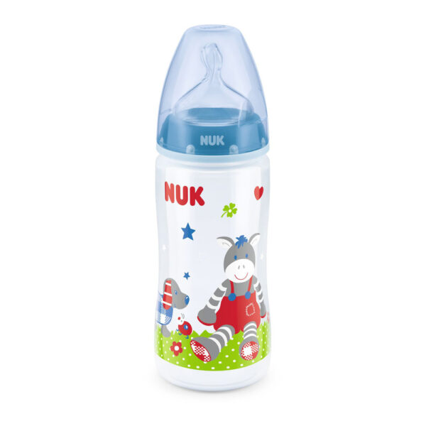 Butelka z silikonowym smoczkiem, First Choice, NUK, niebieska, 300ml