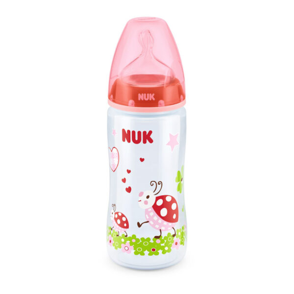 Butelka z silikonowym smoczkiem, First Choice, NUK, czerwona, 300ml