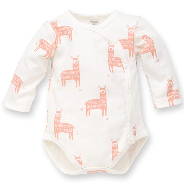 Bawełniane rozpinane body z lamami, PINOKIO, Happy Llama, ecru-74