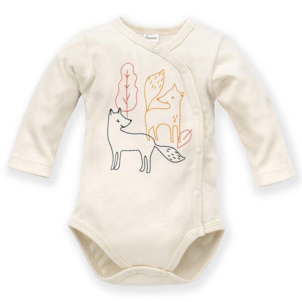 Bawełniane body rozpinane z liskiem, PINOKIO, Secret Forest, ecru-62