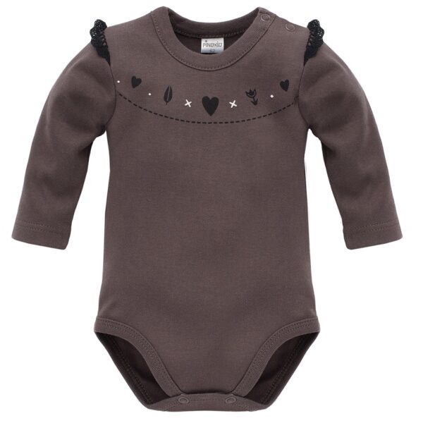 Bawełniane body z koronką, Pinokio, Little Bird, brązowe-68