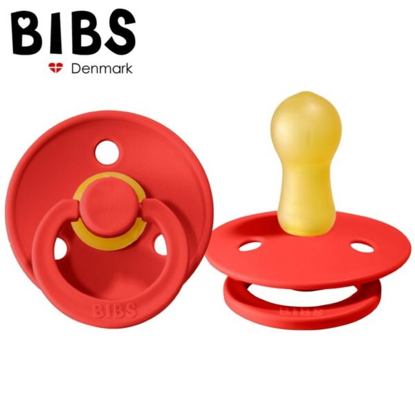Smoczek uspokajający kauczukowy, BIBS, Truskawkowy, 6m+
