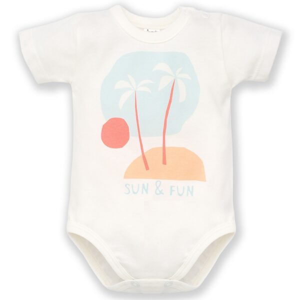 Bawełniane body krótki rękaw, Pinokio, Sun and Fun, ecru-92