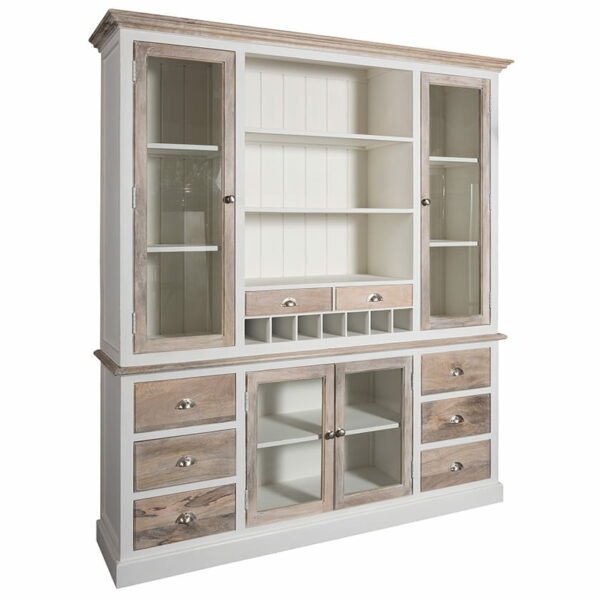 Materiał: Drewno mangowe, MDF, szkło. Jaśniejszy odcień drewna - widoczny na drugim zdjęciu (A) Wymiary produktu: 180x45x210