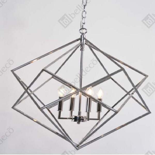 Piękna lampa wisząca w stylu glmour. Lampa pięknie prezentuje się sama, jak i z innymi lampami z serii galmour. Materiał: Metal: NikelWaga: 4,1 kgŻarówki: 4 szt. x E14 max. 40 WŁańcuch: całość 74 cm, część regulowana 55 cm. Wymiary: Wymiary produktu: 51x51x86 cm Zachęcamy do kontaktu z nami.
