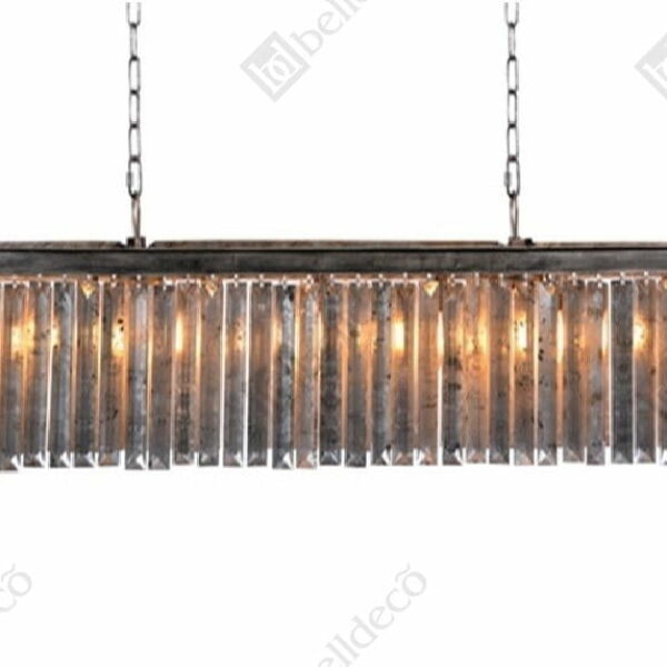 Materiał: Metal w kolorze postarzanego srebra, Szkło: Postarzane lustroWaga: 13 kgUwaga! Lampa w elementach do samodzielnego montażuŻarówki: 7 szt. x E14 max. 40 WŁańcuch: całość 120 cm, część regulowana 103 cm. Wymiary: Wymiary produktu: 120x25x27 cm Zachęcamy do kontaktu z nami.