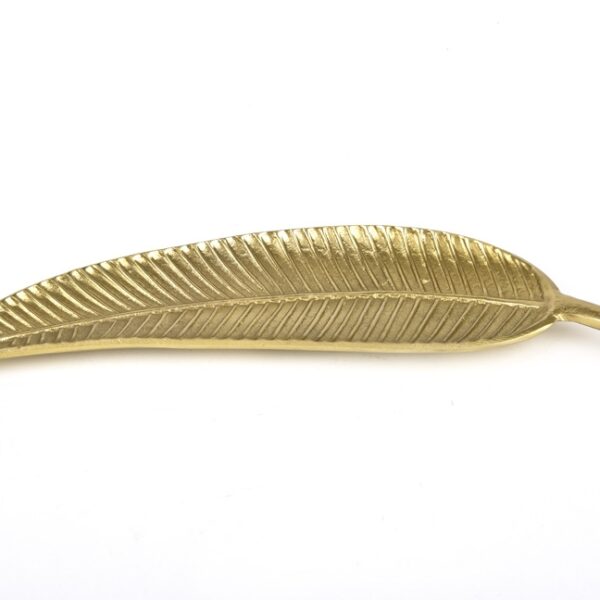 Piękna patera w kształcie liścia. Bardzo elegancki element dekoracji wnętrza. Mosiężny kolor patery prezentuje się bardzo dostojnie.