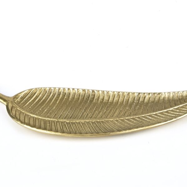 Piękna patera w kształcie liścia. Bardzo elegancki element dekoracji wnętrza. Mosiężny kolor patery prezentuje się bardzo dostojnie.